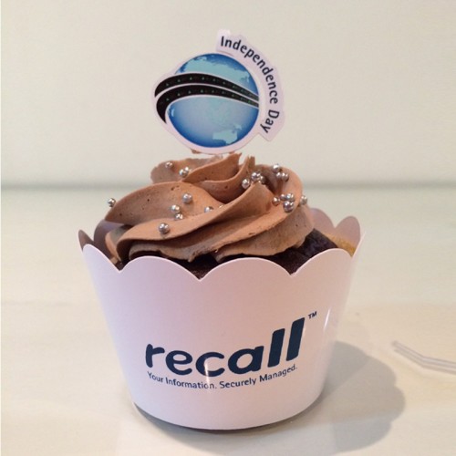Cupcake personalizado para empresa. Este cupcake foi feito para a empresa Recall, com a sainha e bandeirinha personalizada com logotipo da empresa. Faça um cupcake personalizado para sua empresa.